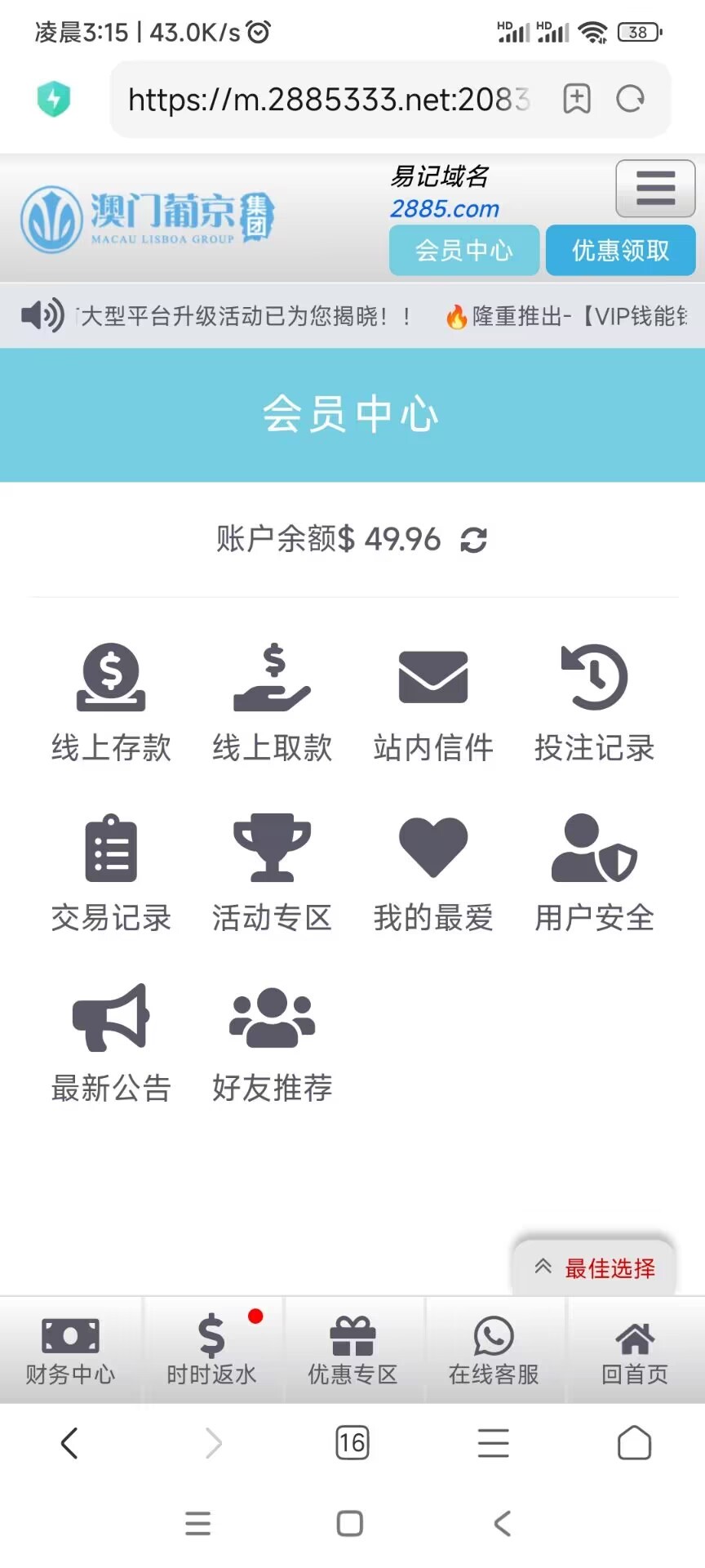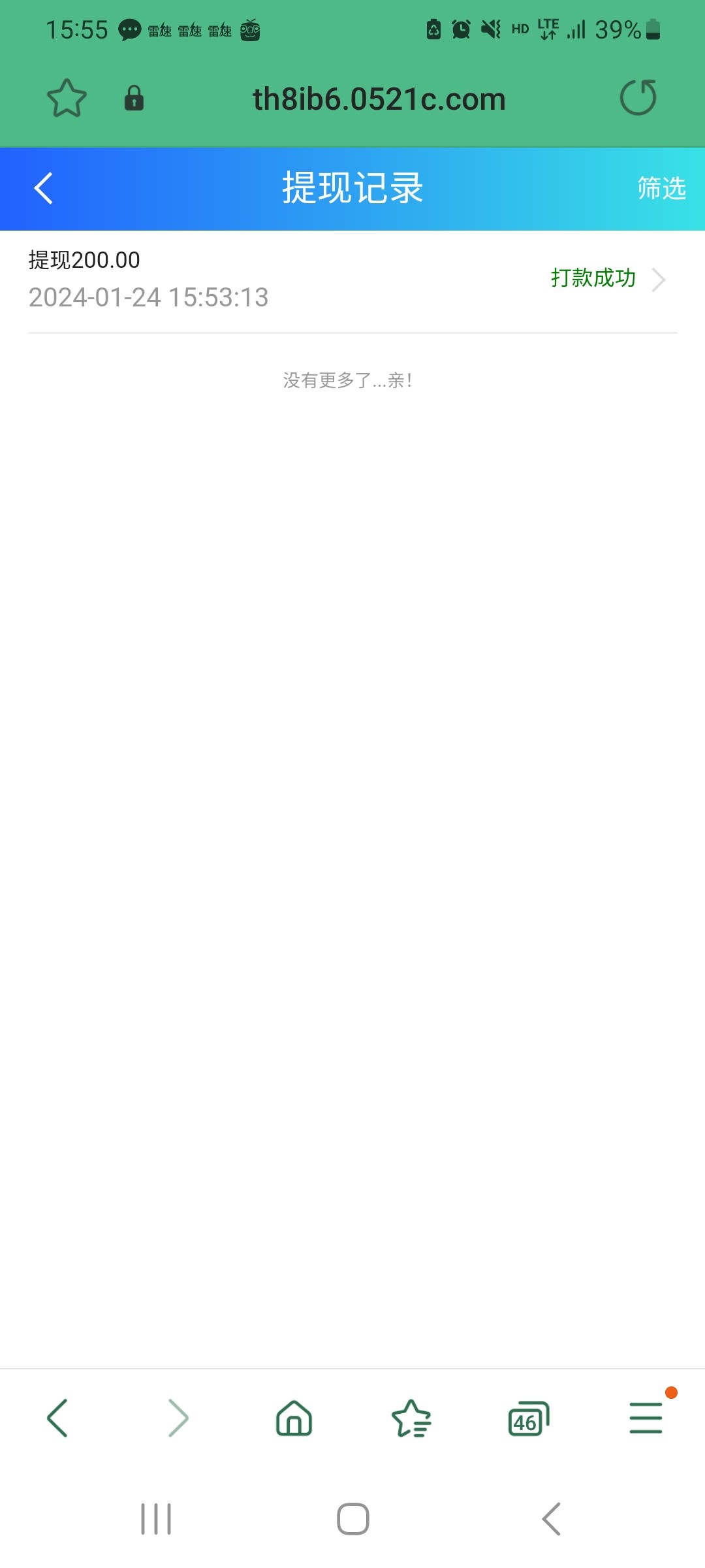 注册秒了47,打到了100,还有40来块的邮箱彩金没领,提100,3分钟到账,一会剩下的40多再提100,美滋滋啊