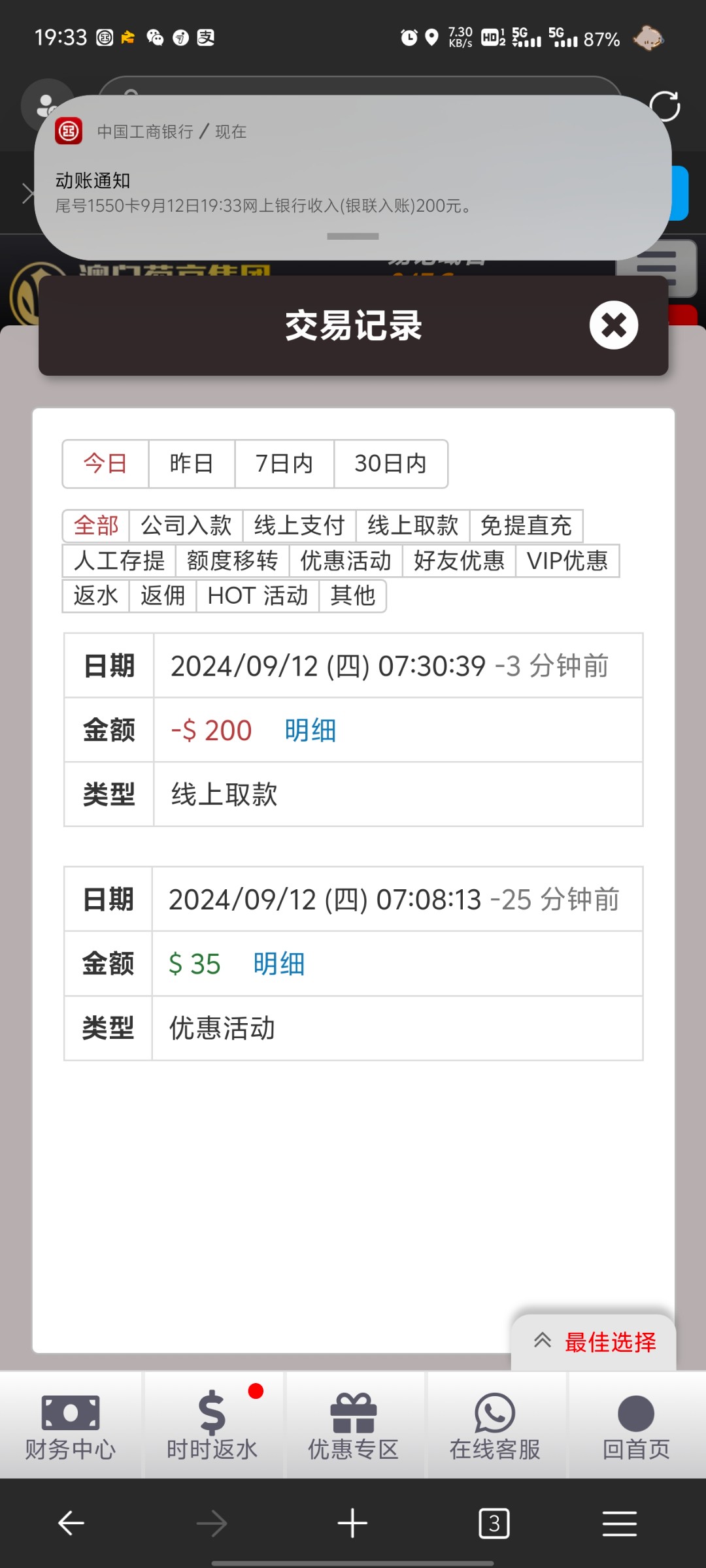 今天赢了12块钱