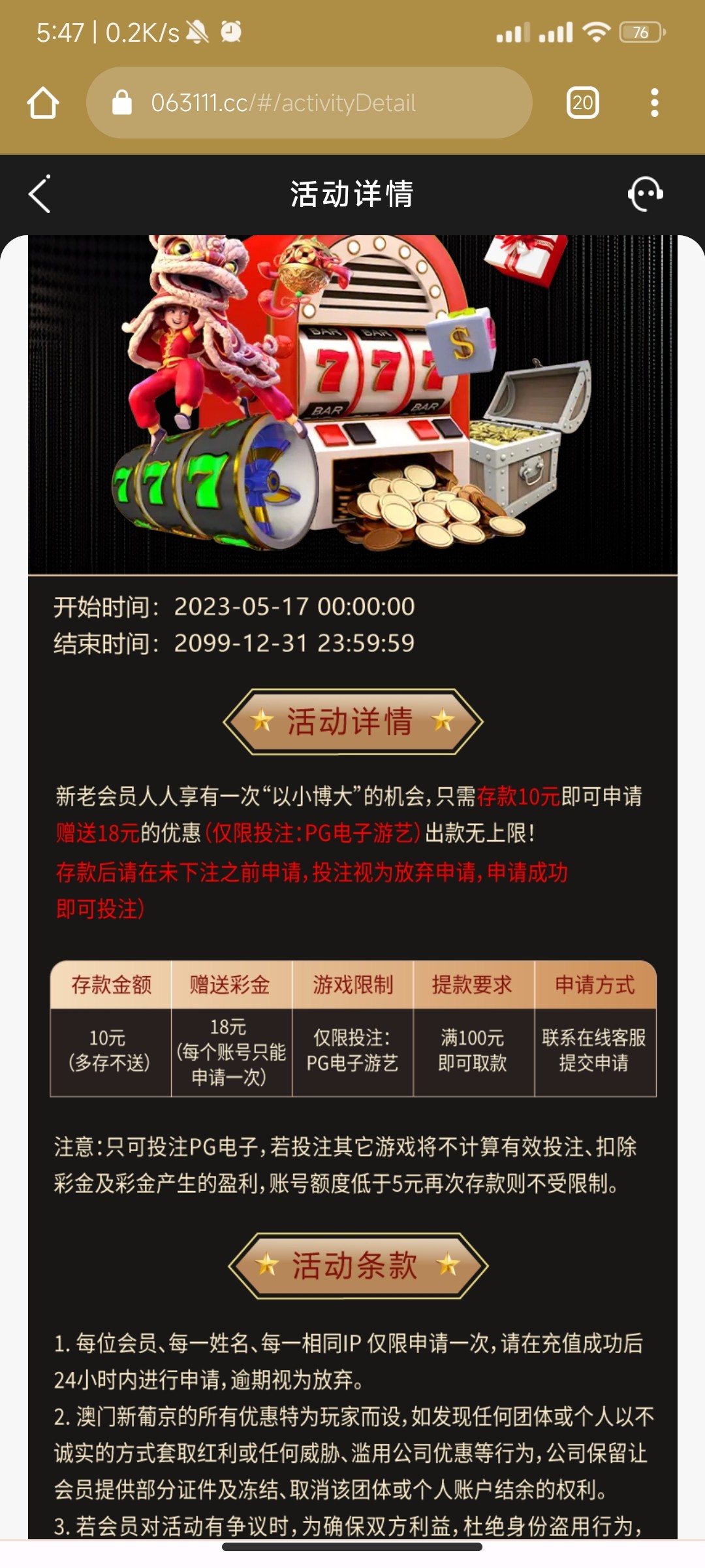 想玩的可以博他一博,这个打到100可以提款,限制PG,最好先开下飞行模式,等10秒关闭再去注册,减小多IP的概率