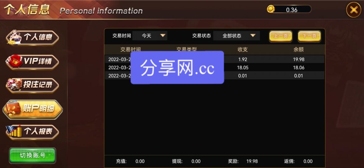 狗杂种一个,18玩的700,又输了200,提100都不给其他都取消了,说不是正常玩家