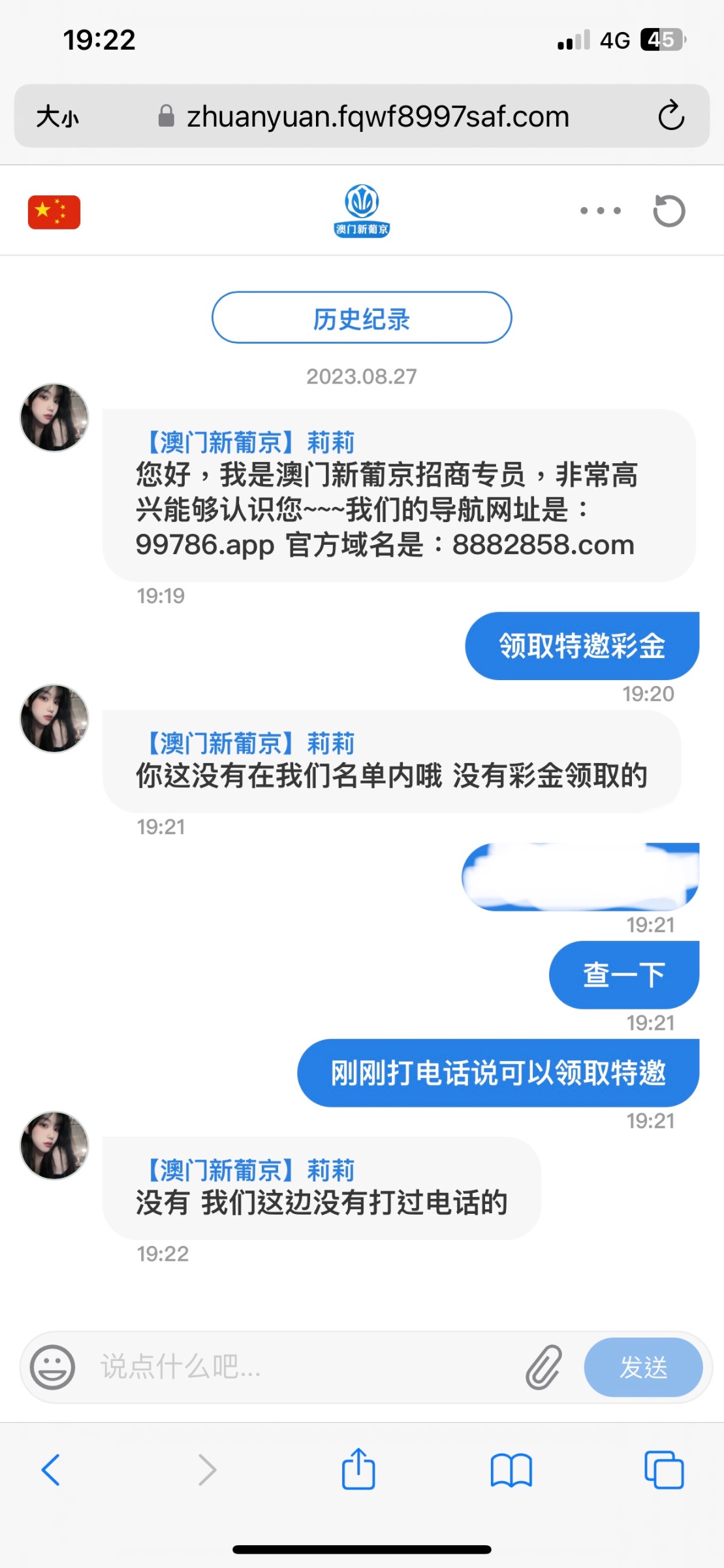 下方链接进去找专人领取特邀彩金,会让你发手机号是特邀会给你邀请码注册,碰瓷问就说打电话来的,要图就截图境外电话给他