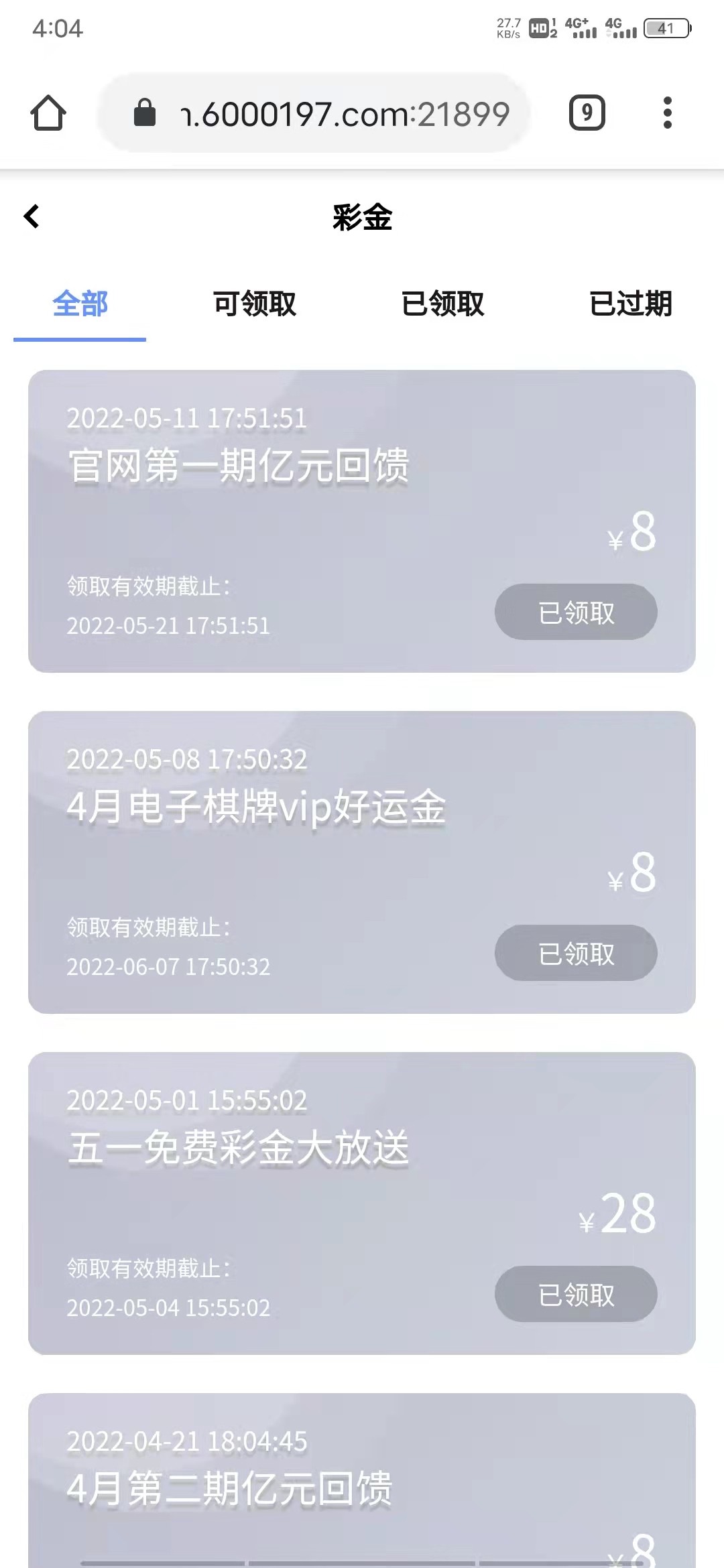 一哥 还好白嫖了五百 不敢提多只能一百两百的提 然后充一百进去说好送两百 结果只送了一个58一个46的彩金 还得分开领取的无语了