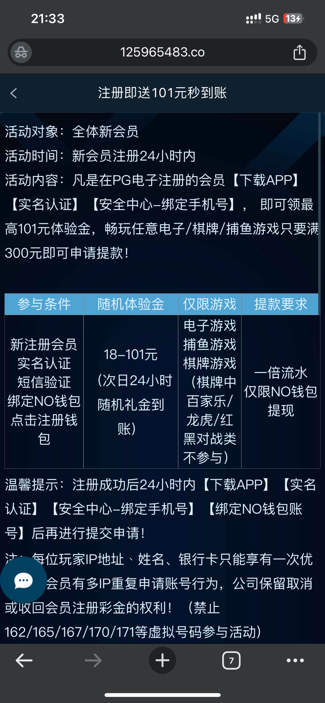 新用户下载app注册绑定手机号 绑定NO钱包 24小时内自动赠送18~101彩金 新出来的平台 基本都送 游戏和提款限制自行查看优惠