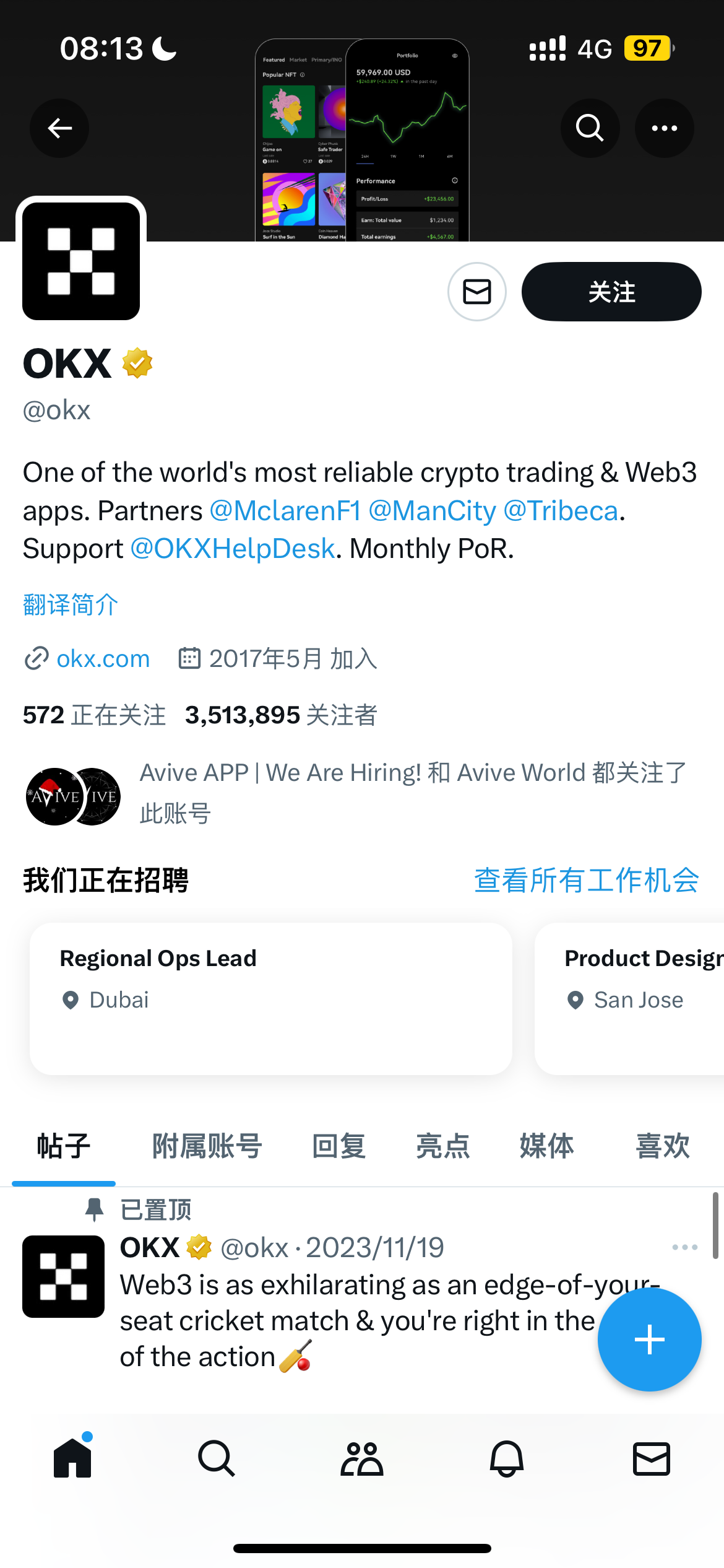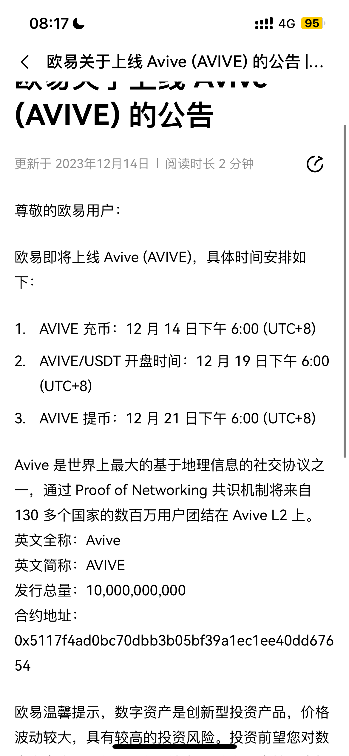 之前站长推的avive欧易上线了