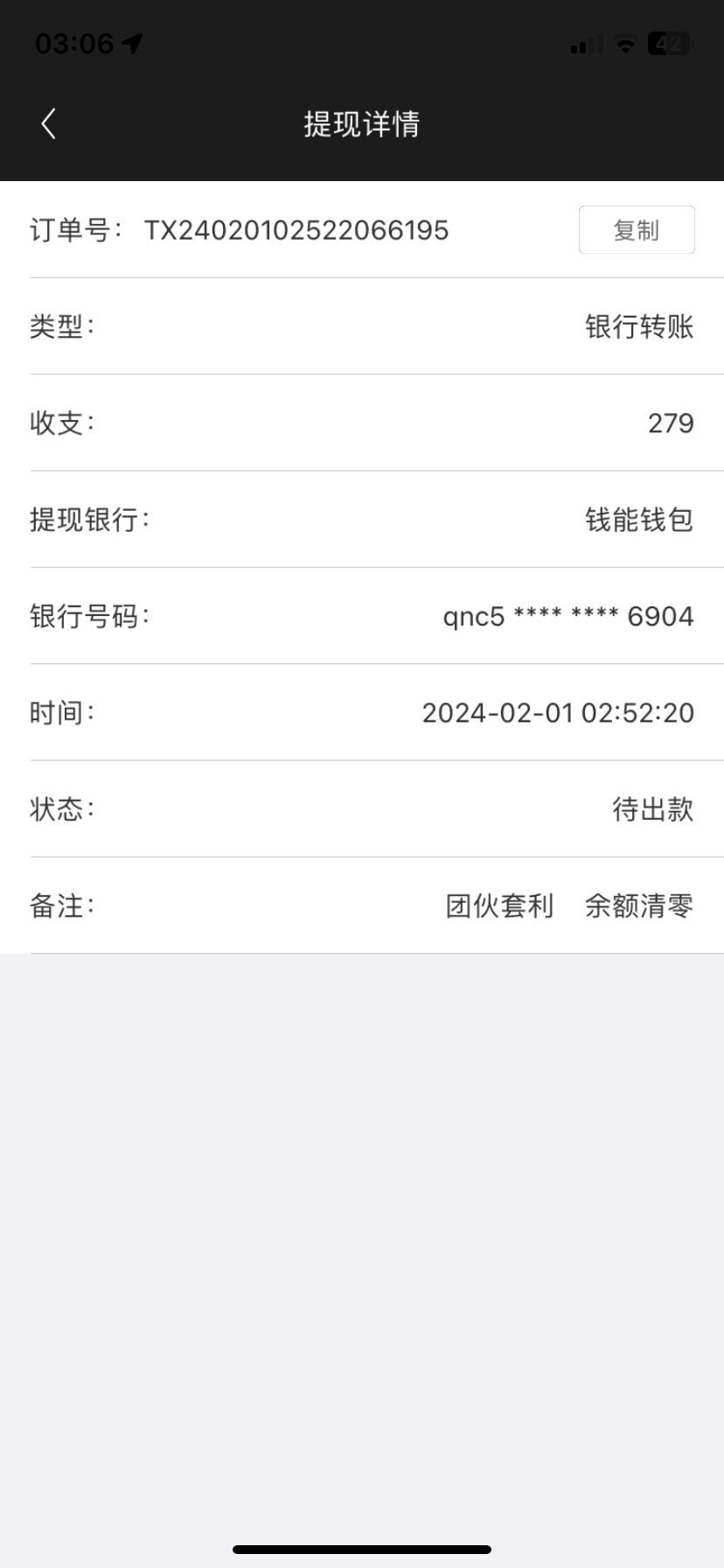 提现160到账了