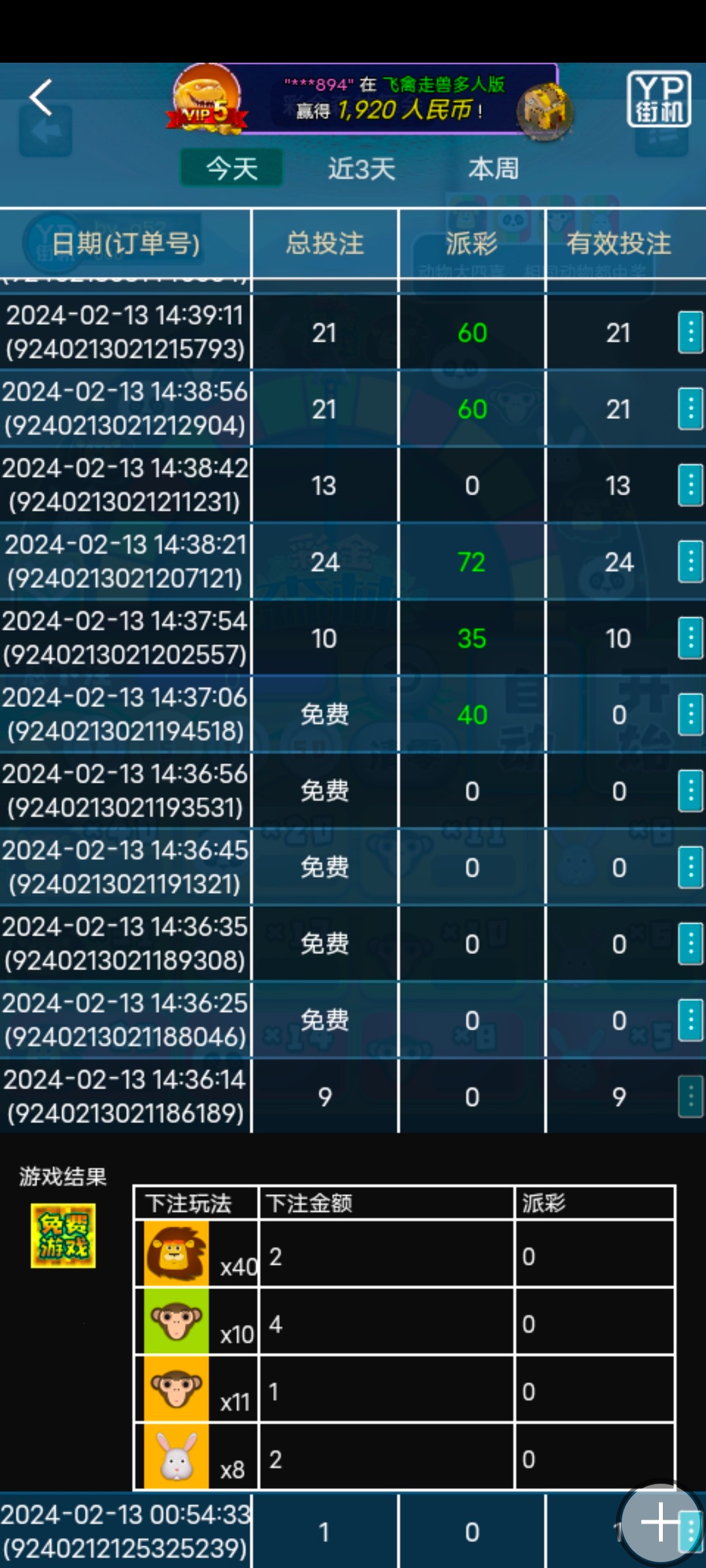 这就跟尴尬了,本来已经提了,然后想转钱能转盘我又充进去了,结果转了3次就转了1块钱 然后那个麻将6毛买了180次 进了3次胡 一次12块 一次6块 还有一次全空转一分没有 直接彩金森林舞会走起 梭哈,中了免费游戏给了666 原来第一次的180也是红包9块梭哈给了我免费游戏