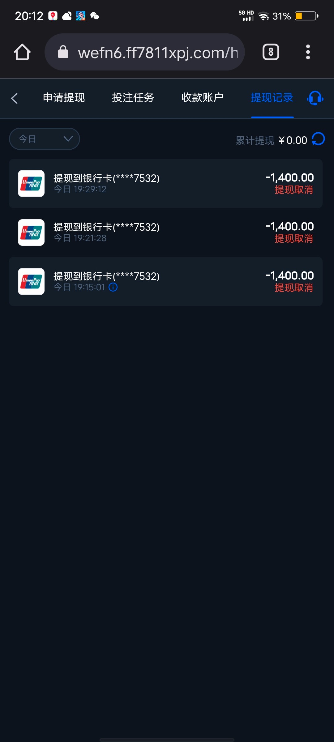 本人这个月充值了5000多提现了300,超过了10000就不给我提款,大家小心点哦
