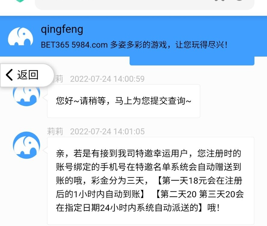老用户有号的自动回馈18大部分都有,没有就是不符合