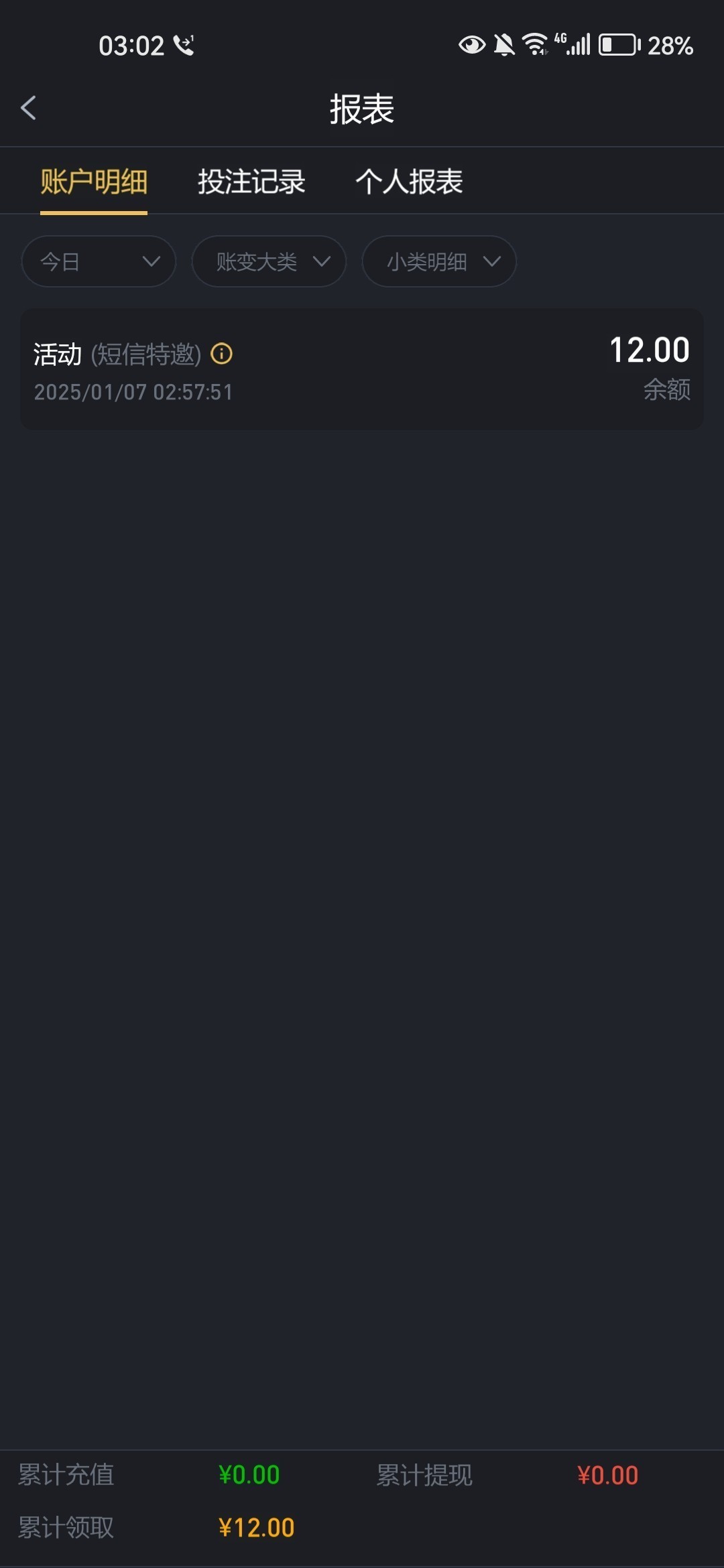 新用户注册完善信息优惠里面下载APP自助申请12短信特邀彩金,具体自测吧