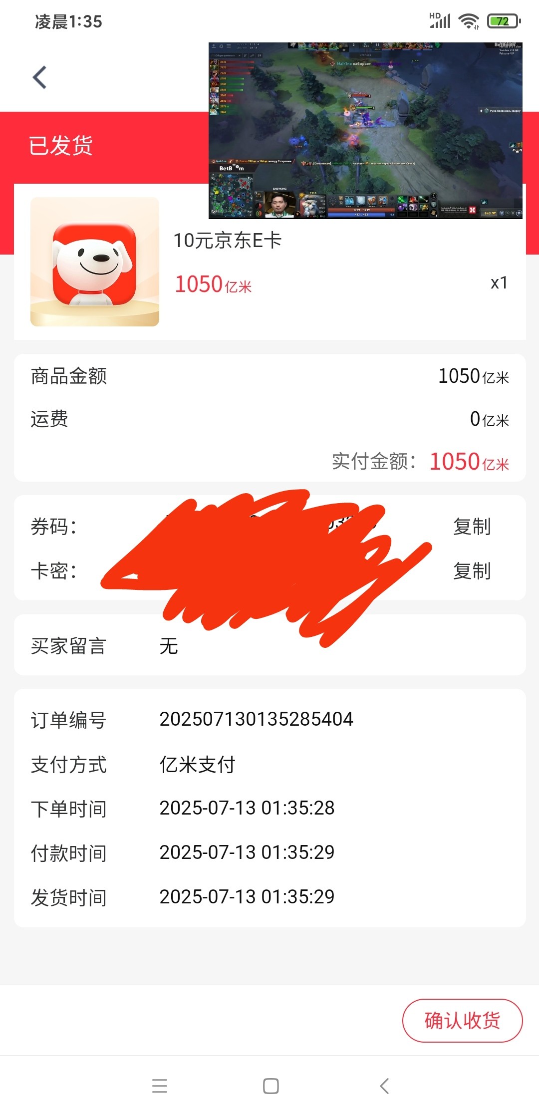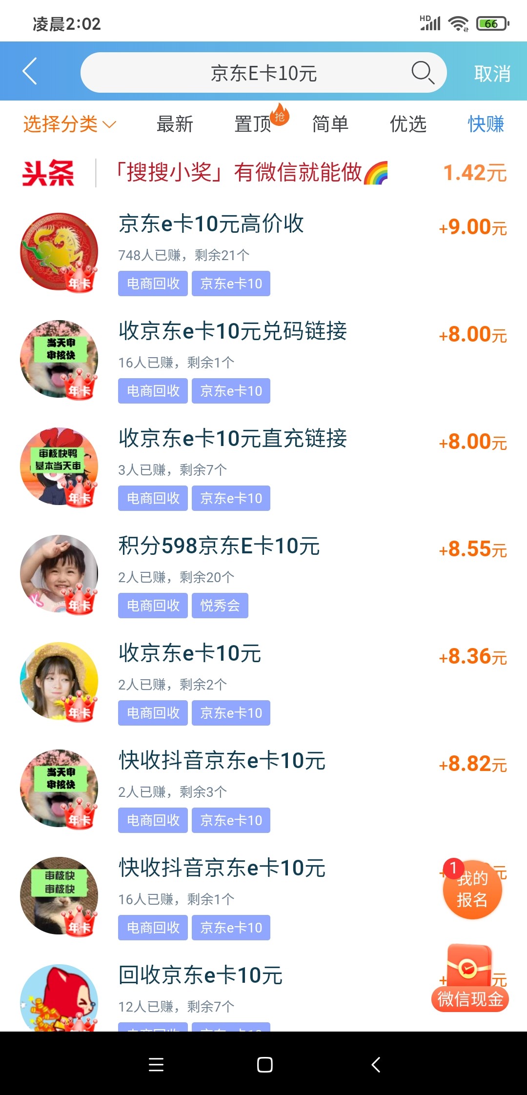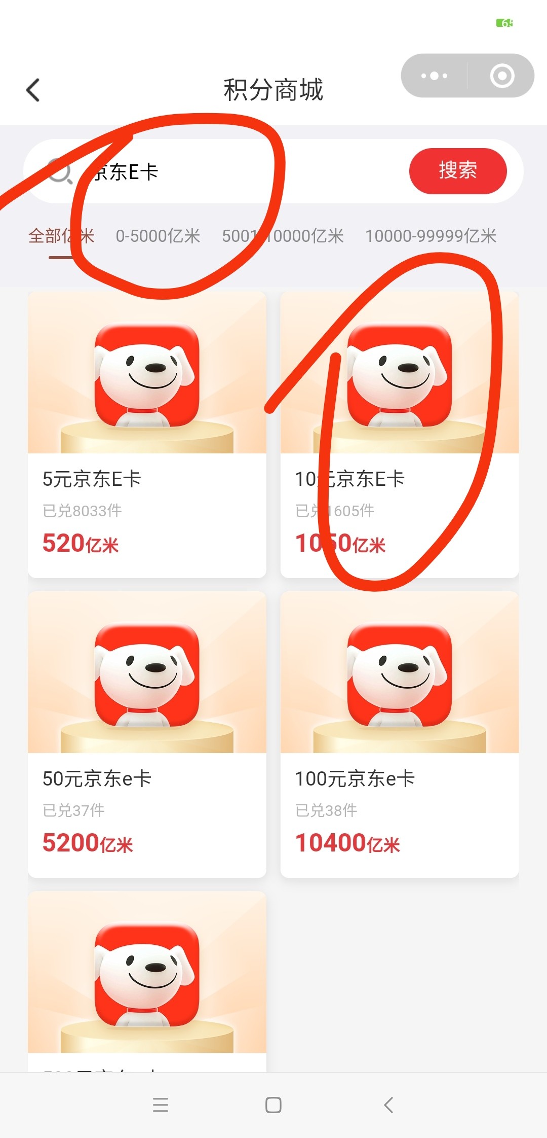 三个都领到有1100亿米,重新点第一个链接去兑换,搜索京东e卡兑换10元的,我这里是没直接京东e卡扫码的台子,可以上那种手机上做任务平台里面找人回收,八块九块的都有。我是趣闲赚上找的一个九块的,别的地方见到更高价的。