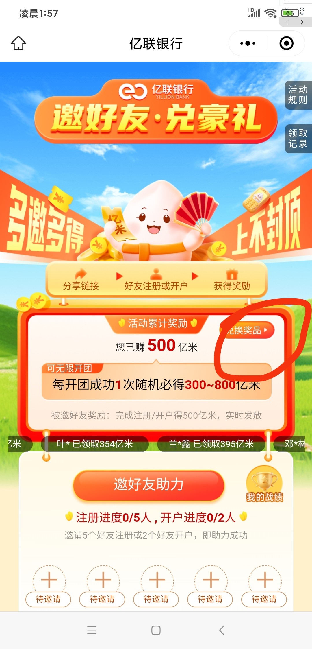 然后复制这段话到微信任意聊天窗口打开,再领取500亿米#小程序://亿联银行/rBCmQtzaNHNezvy