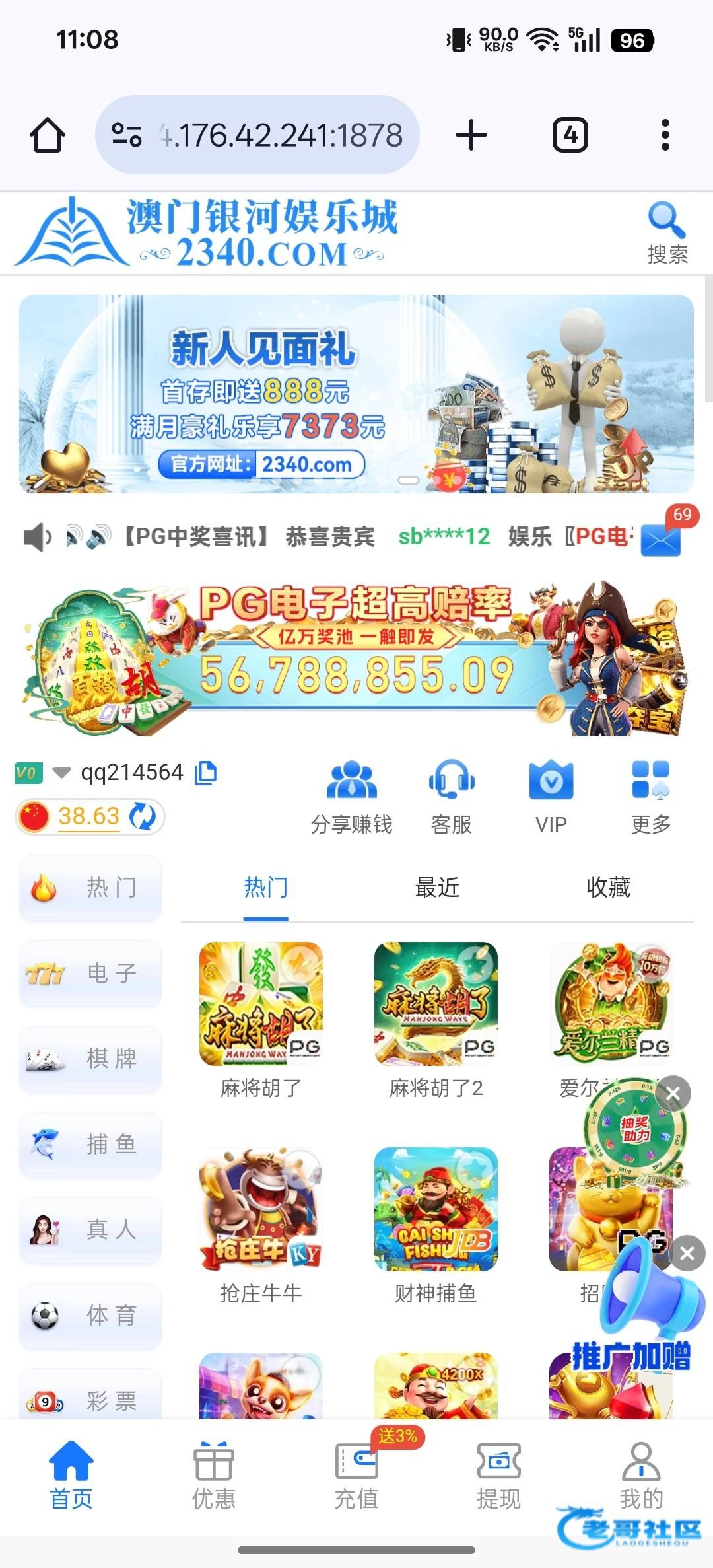 澳门银河2340,前几天发了这个台子,然后有电话回访彩金 ,接到电话登录就有,有号的可以联系客服碰瓷试试,网址 2340.com