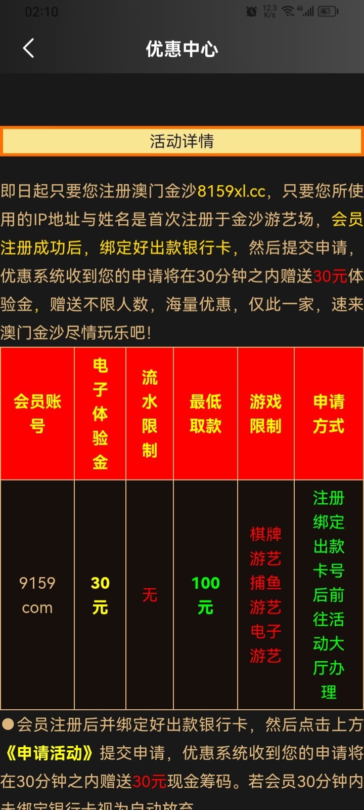 注册账号活动大厅自助申请,过不过就是看狗庄心情了 自己试试 送30
