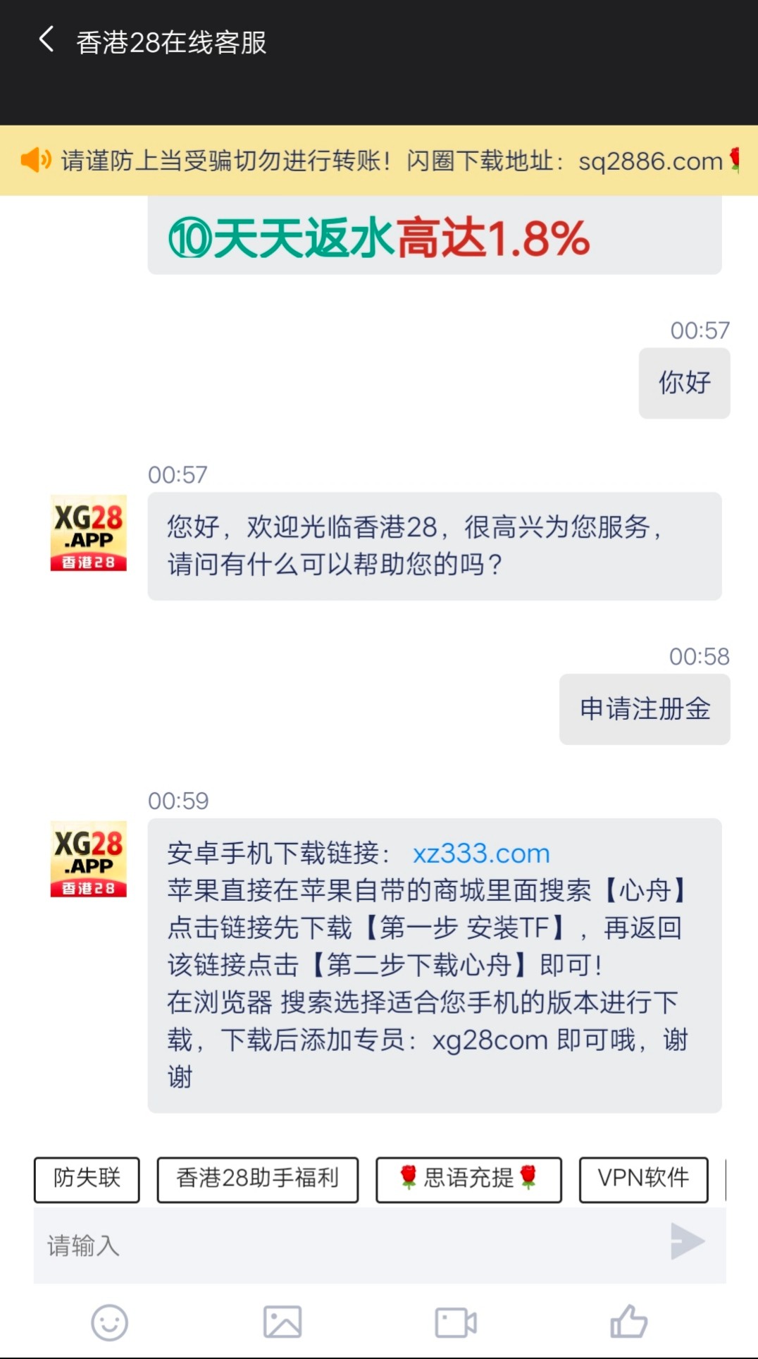香港28注册送58,注册完绑定出款方式找在线客服说领取注册彩金她会问你哪里来的,就说预测网看到的,然后她会发你一个链接添加专员然后重复上面操作即可,亲测出款300。