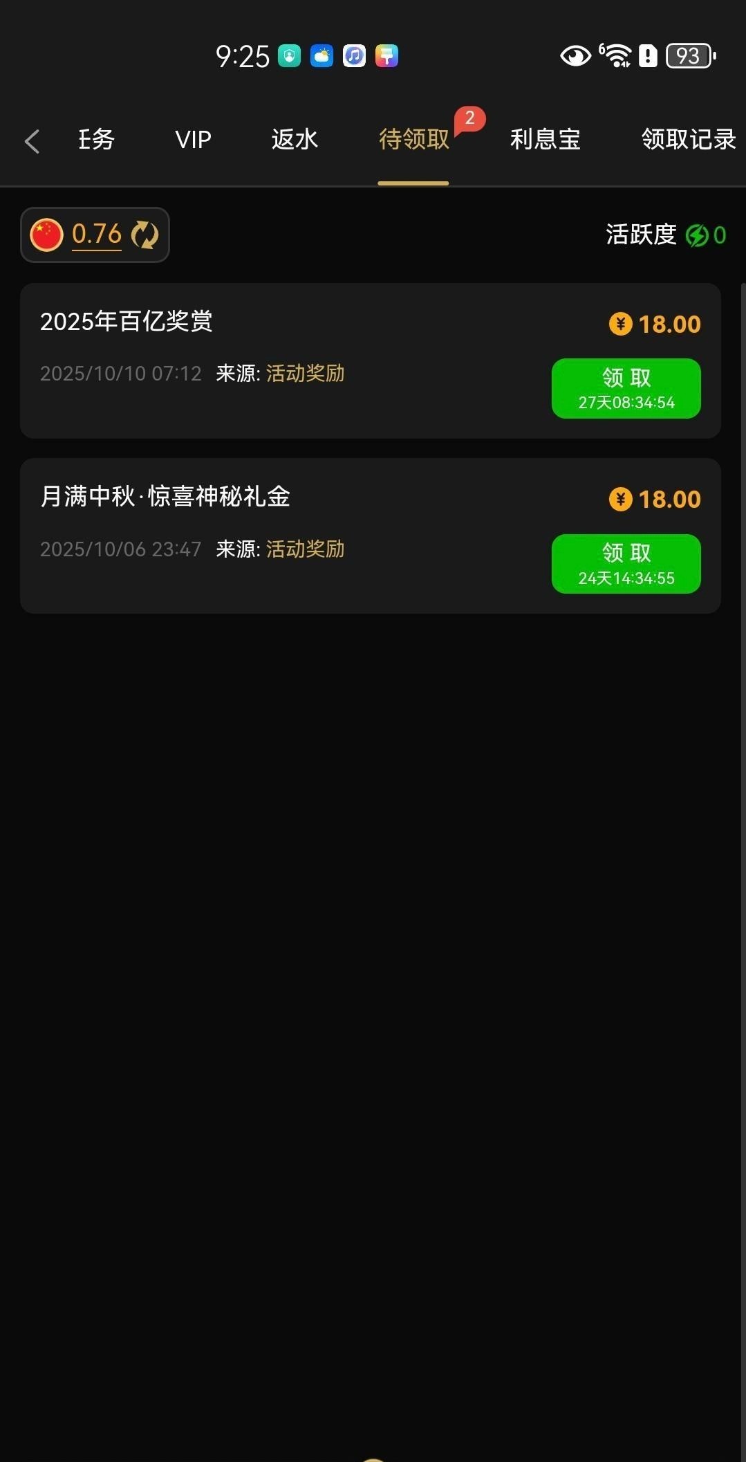 亿奖赏18和中秋神秘礼金18一共36之前充值过200有号的可以看下,没有勿喷。链接4566.com