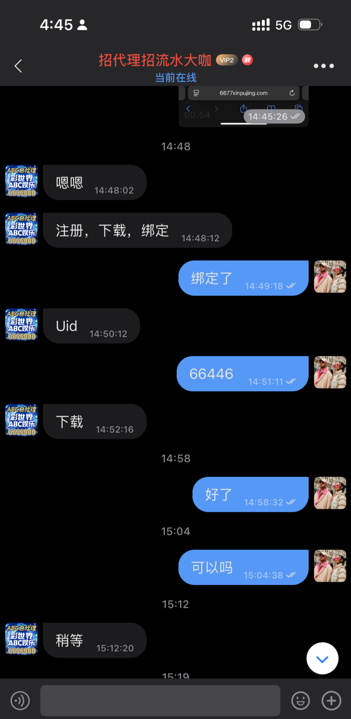 之前别人发过的,注册送38,最高下888。之前客服不回复,今天去发现加旺旺可以审核,加旺旺时候备注自己的uid才会通过,录屏给他最近娱乐记录很快就送。