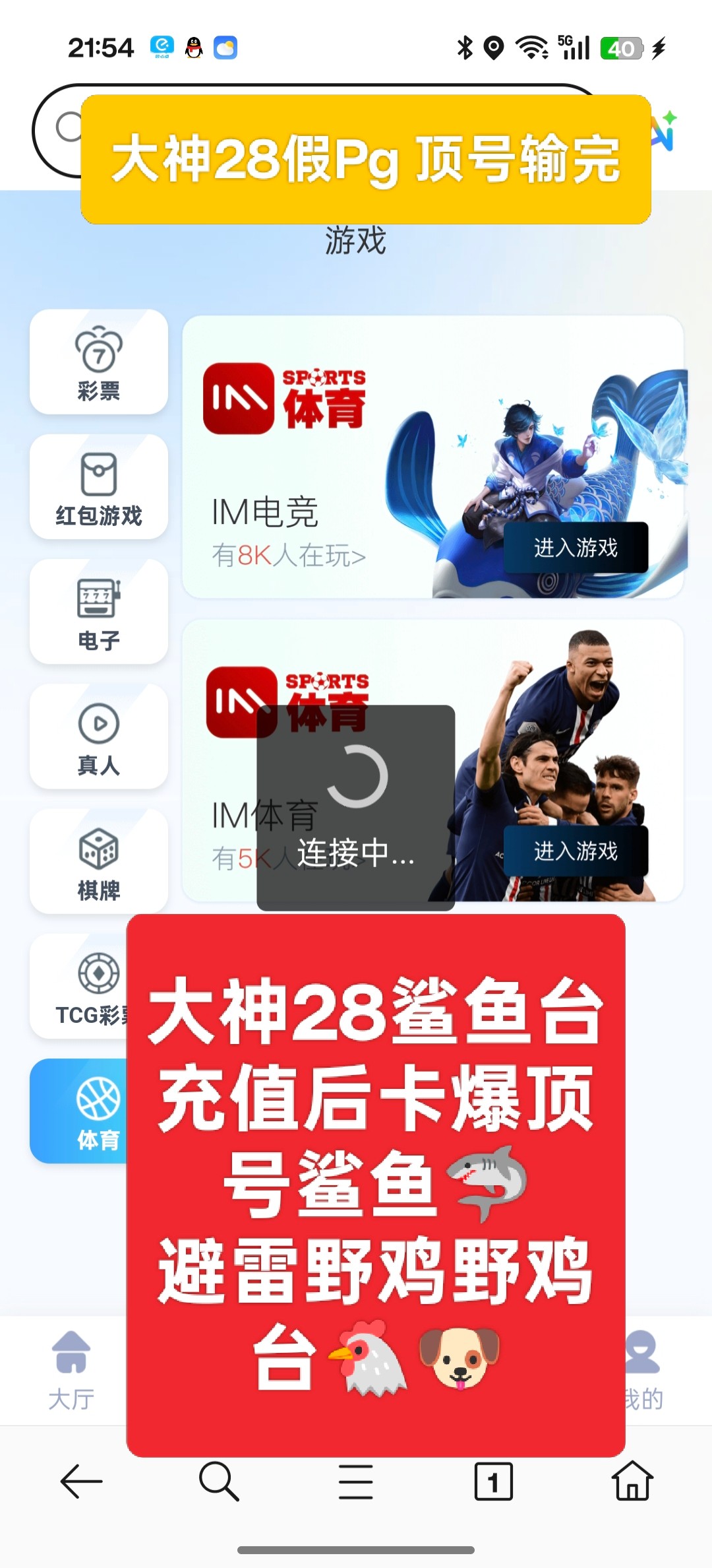 服务器卡到爆,一直连接,期间我还换WiFi,流量浏览器 其他平台都流畅。pg也是假的,拉一下卡三四秒的,期间掉了两次号,然后打加拿大直接给我卡到乱选,后面杀完了,我再进去就几把流畅起来了