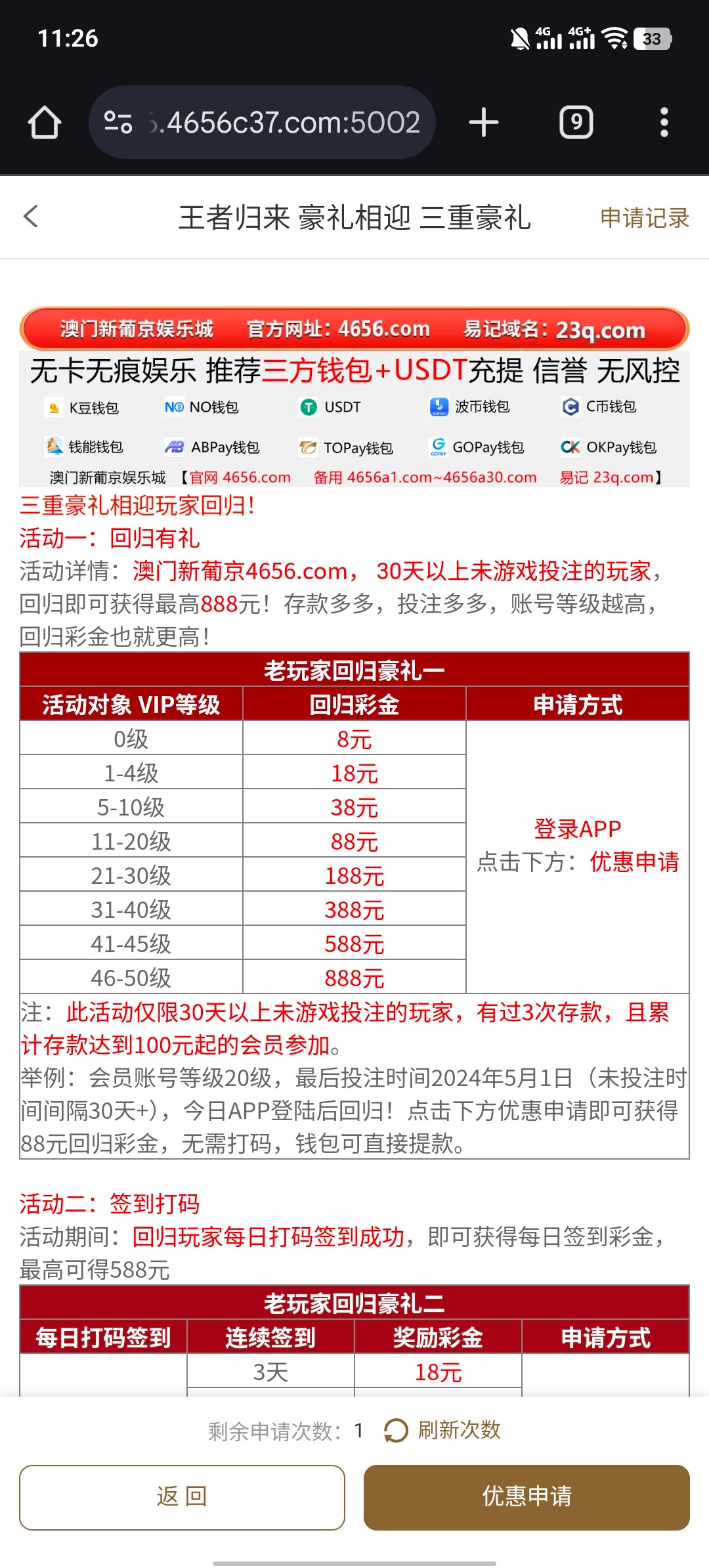 充值过有号的可以去申请 只能申请一次 最低8元