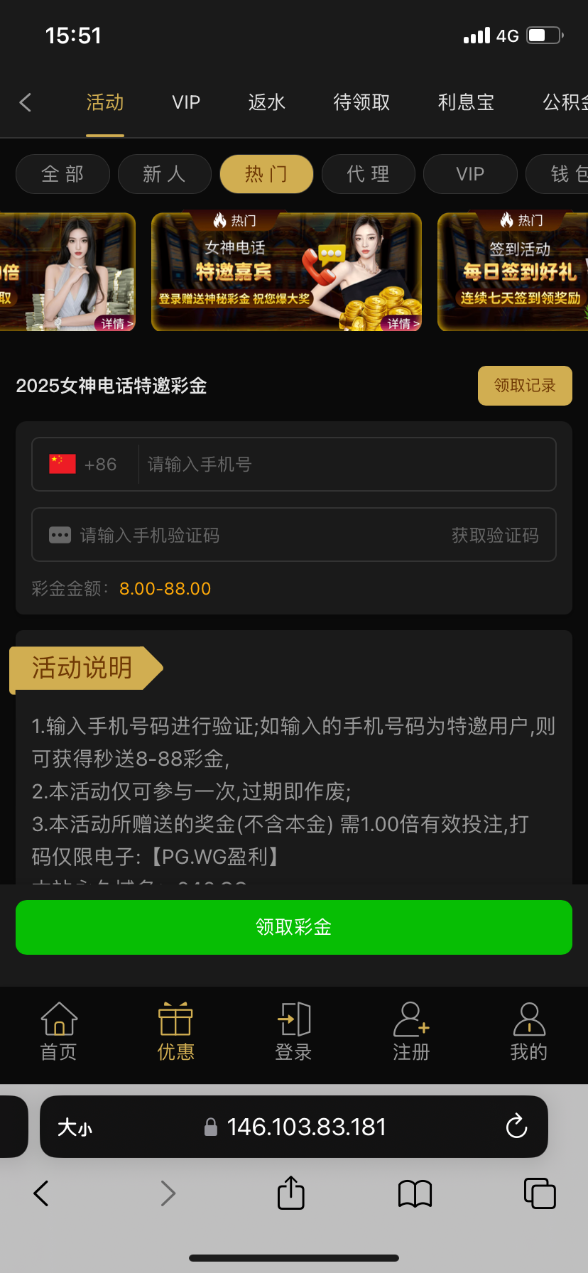 碰瓷特邀,新用户注册优惠大厅点击热门里面自助申请碰瓷8/100提,彩金只能玩PG/WG电子。4850.com