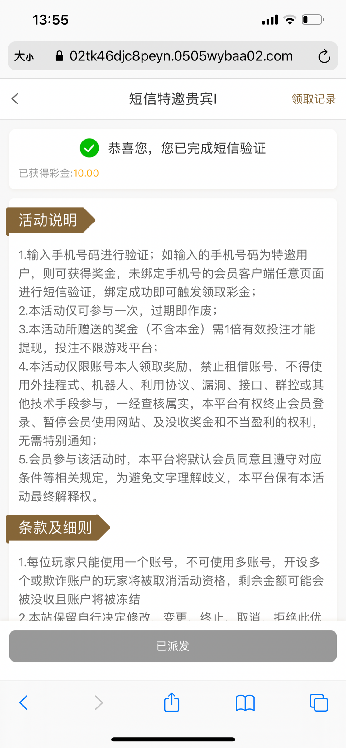 之前注册不是特邀,最近发短信上去就领了,大家可以碰一下0505.com