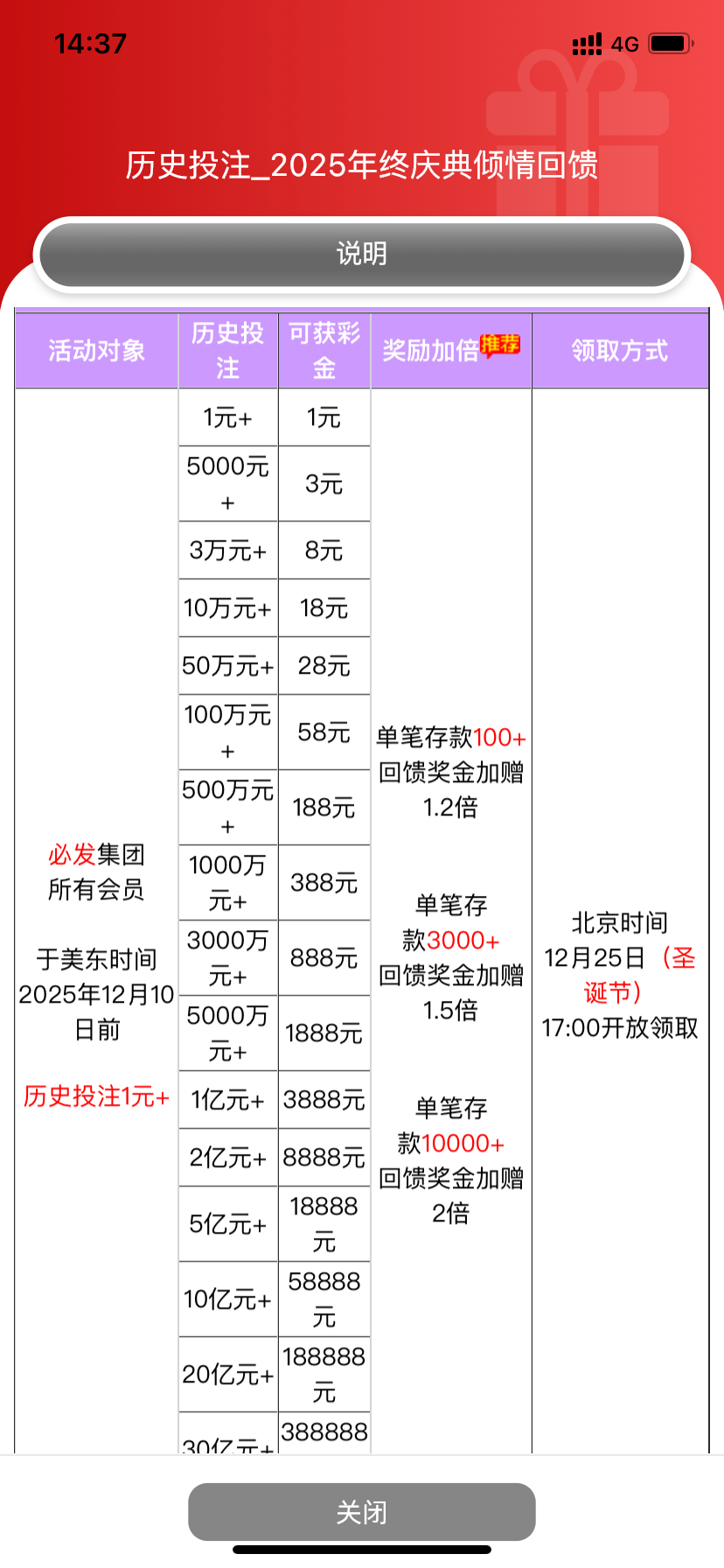 圣诞福利有两个 分别是历史充值彩金只要充值过就有