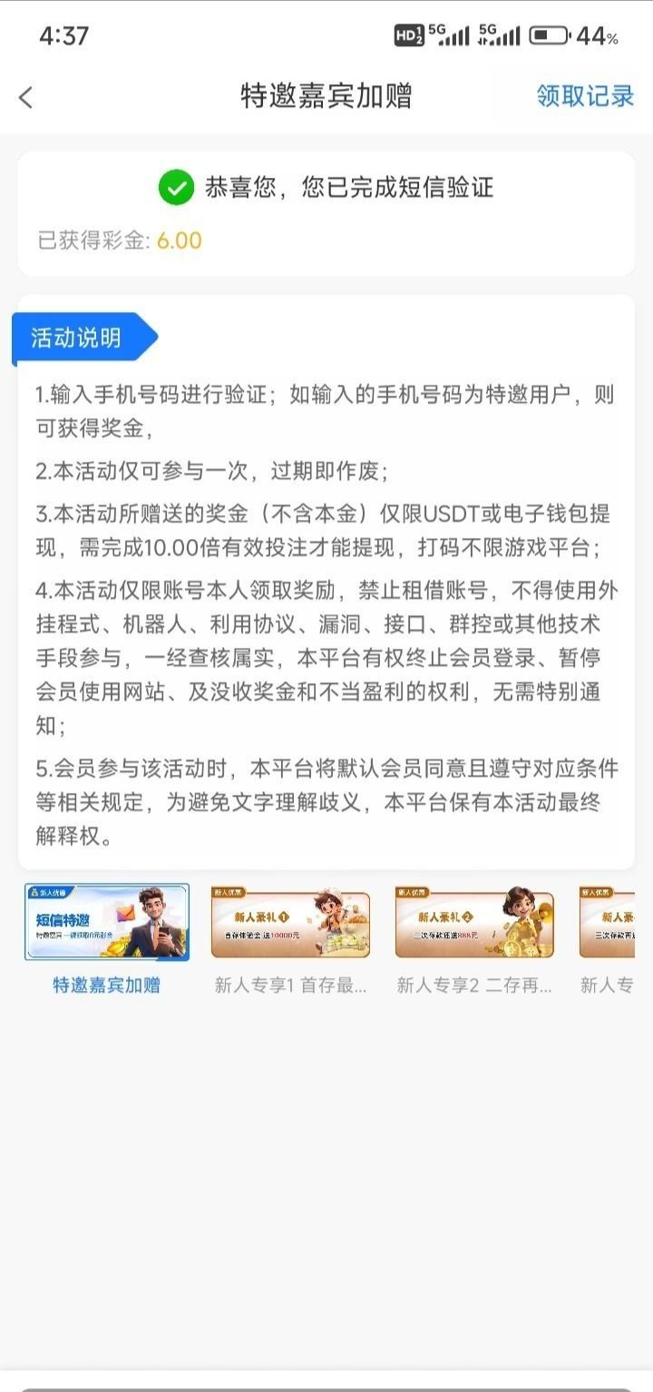 注册下载绑定,优惠中心自助手机号领取6 满100提现,出款自测!