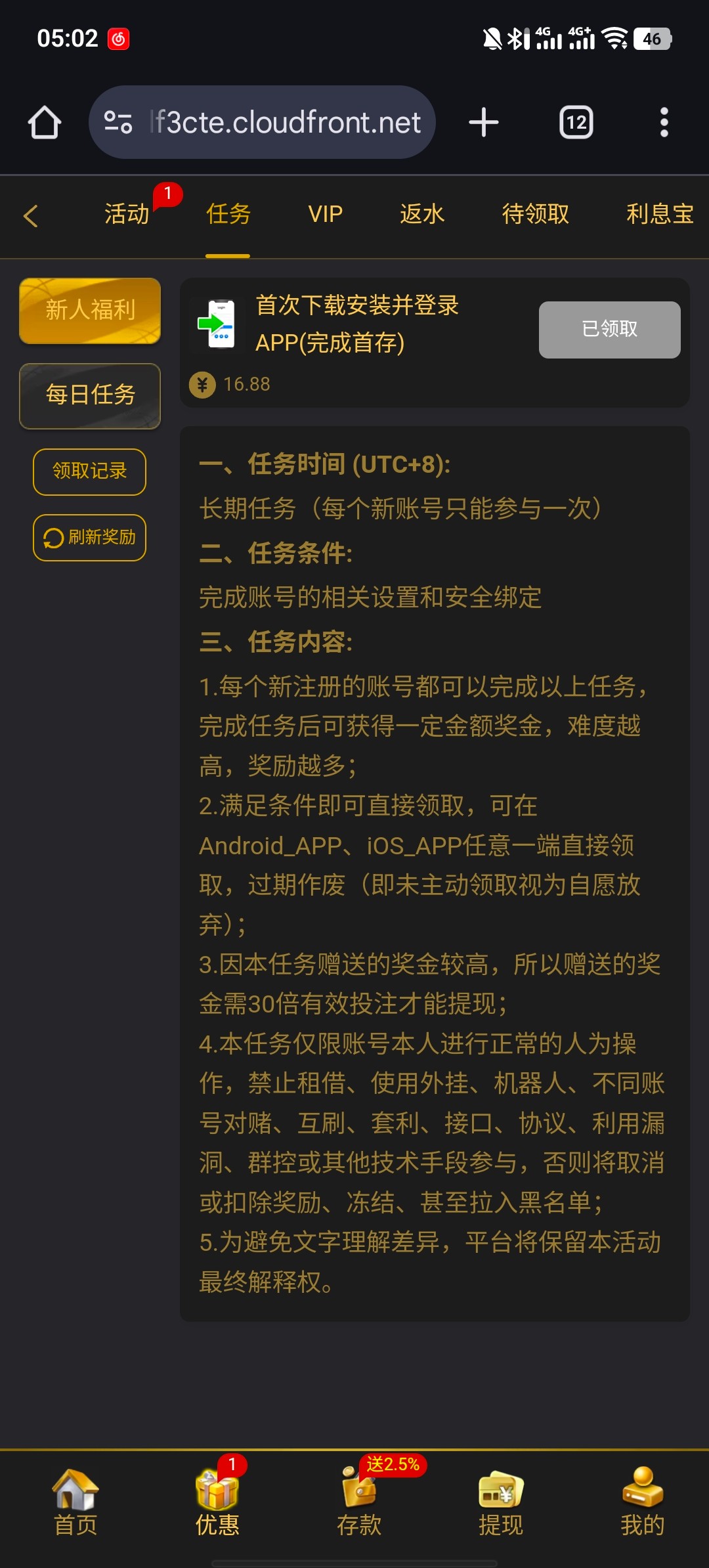 3、本站资源均来自互联网-需自行判断与负责。每日更新(论坛内容仅用于 薅羊毛 白嫖 论坛严禁充值娱乐 严禁任何形式推广 发现一律提交当地公安 )感谢您的支持!