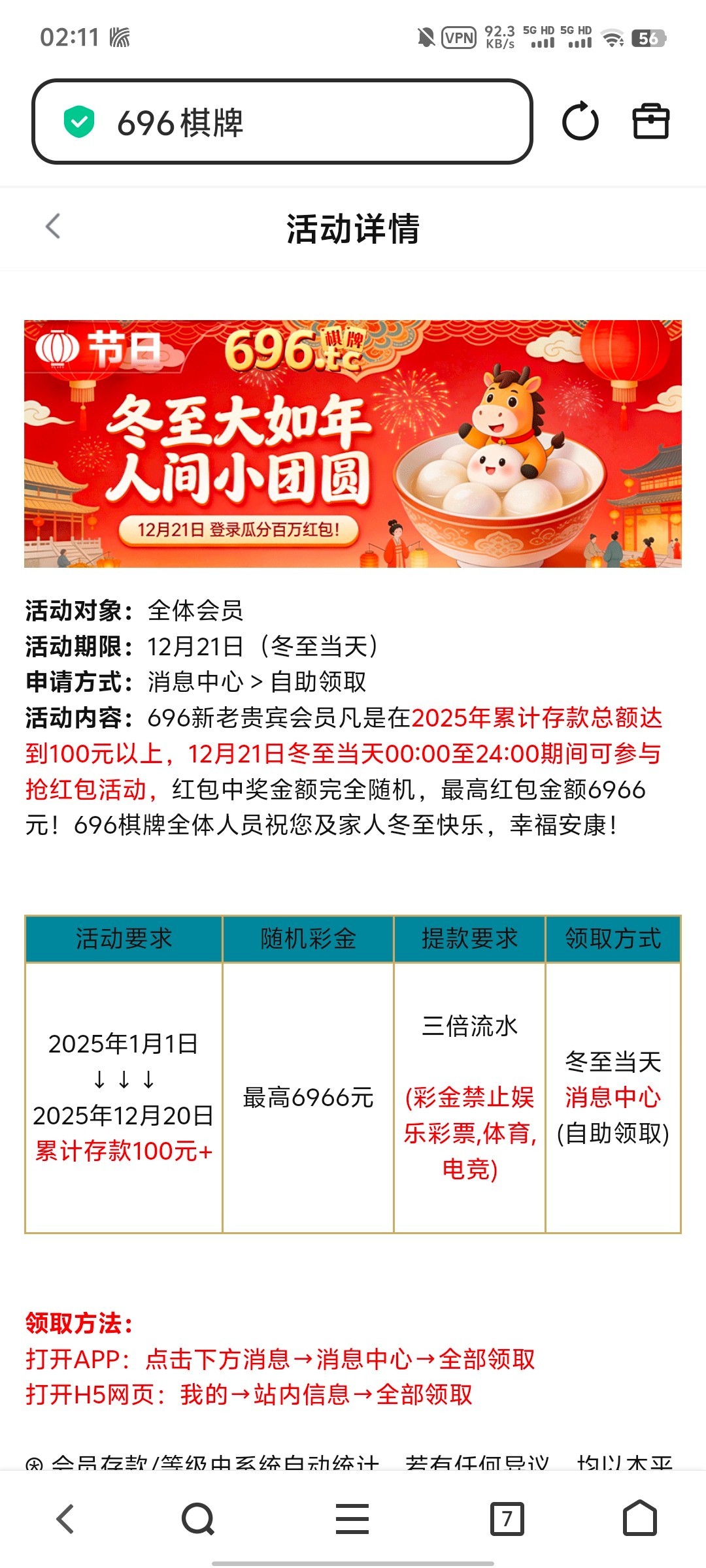 今年有充值过100的,登陆上去消息里面自助领取,网址04696.cc或者696.tc