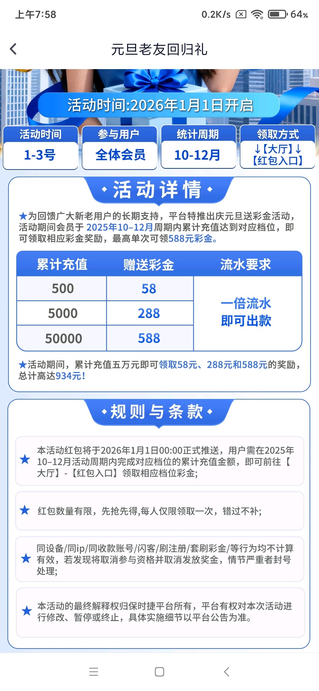 10月-12月累计充值500元以上的1月1日