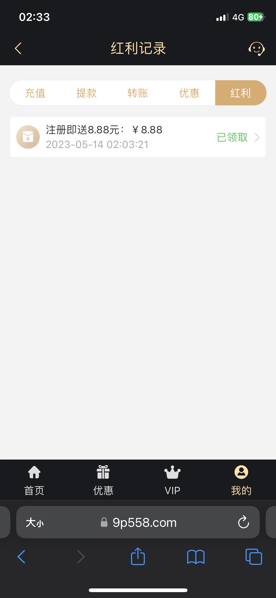 活动:新用户注册完善个人资料我的-红利-免费白菜自助领取8.88/100提