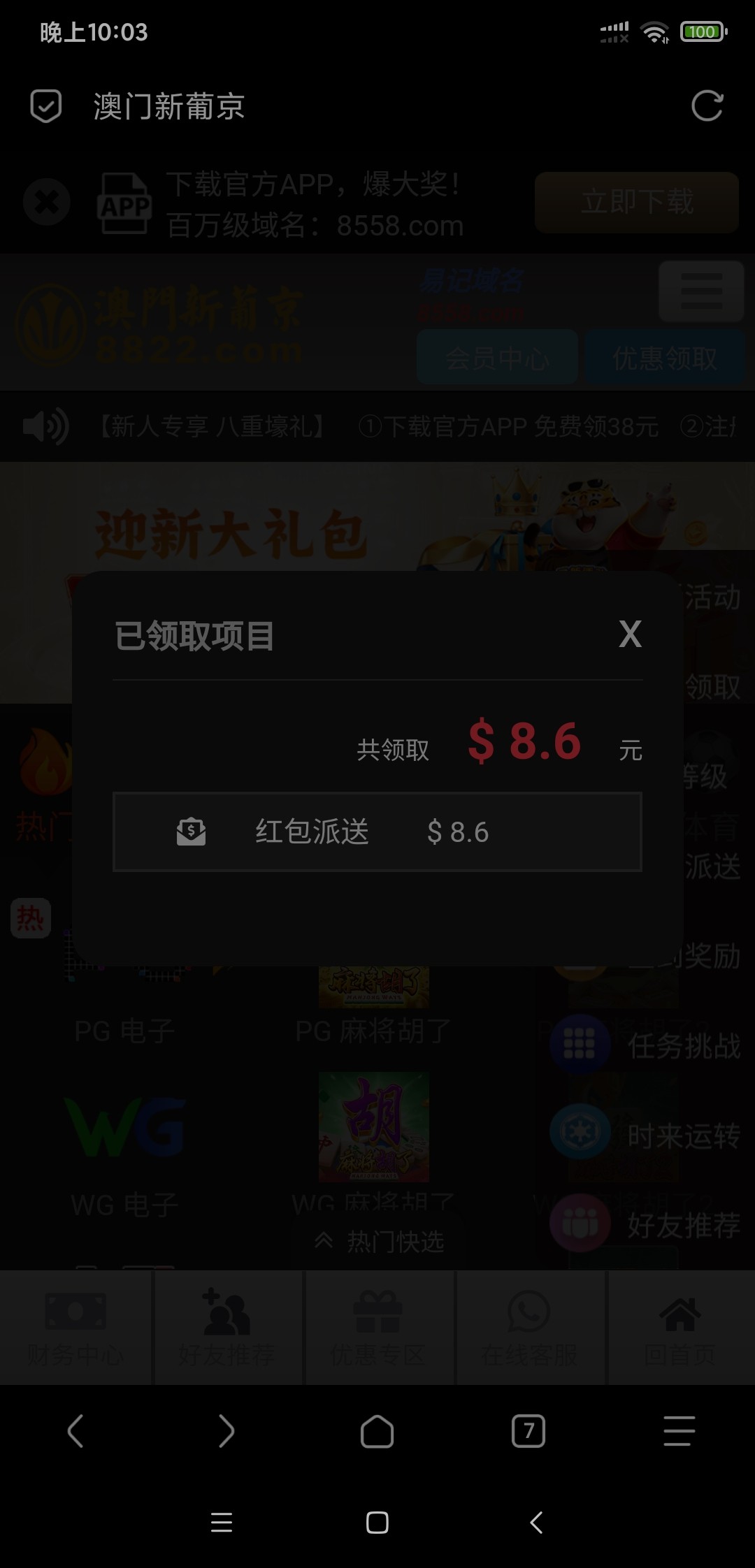 【澳门新葡京8822】登录弹窗彩金