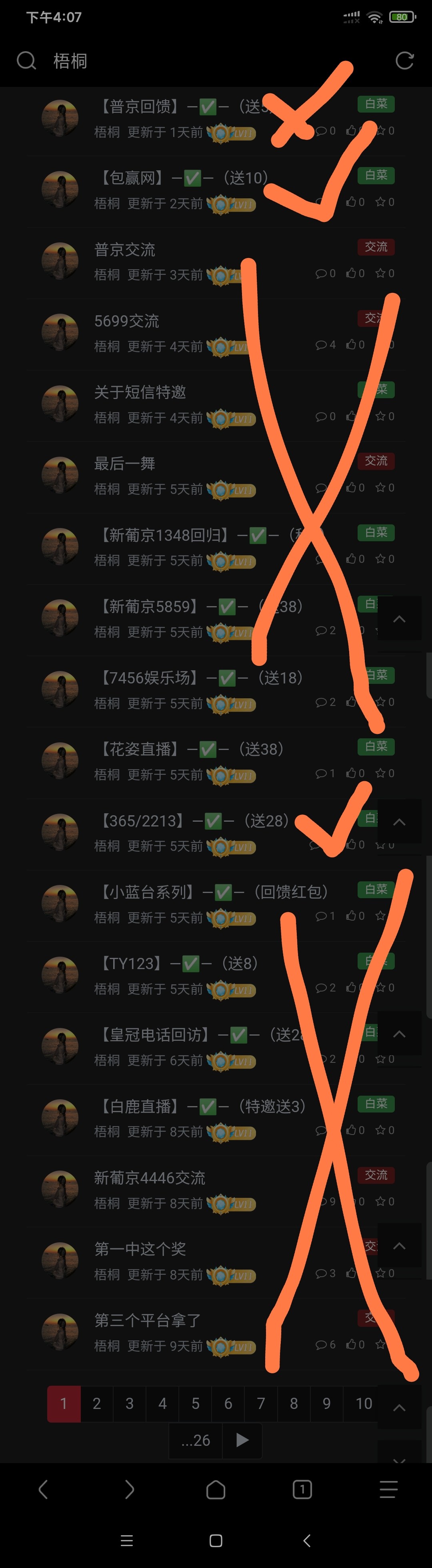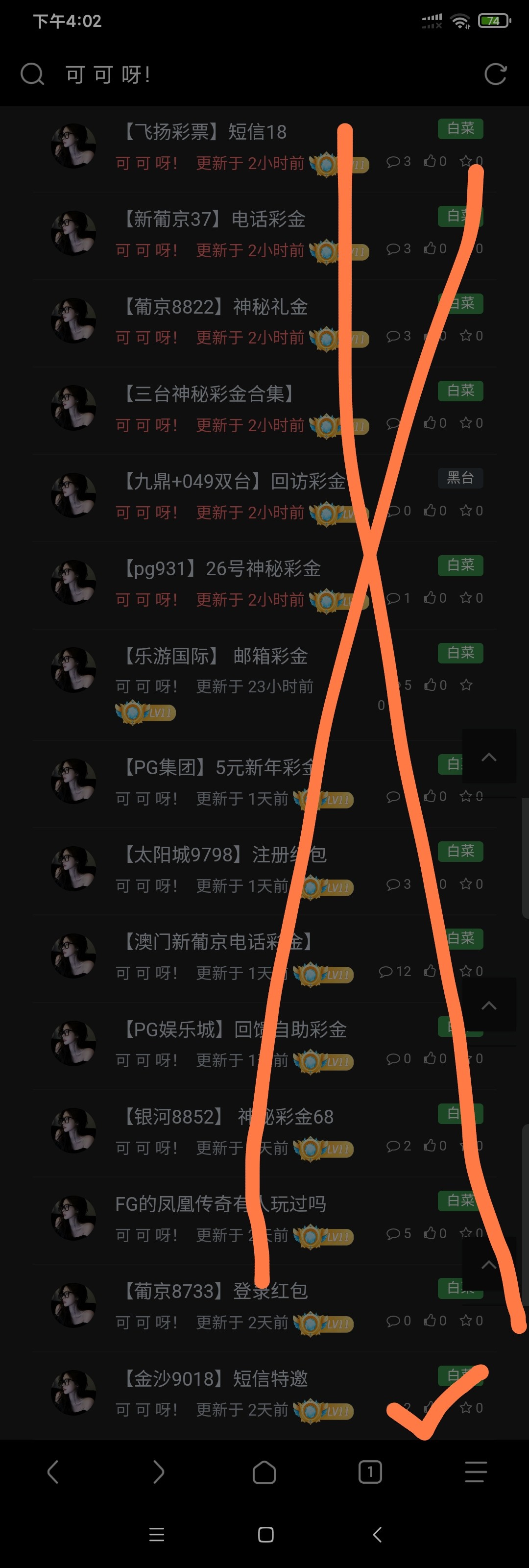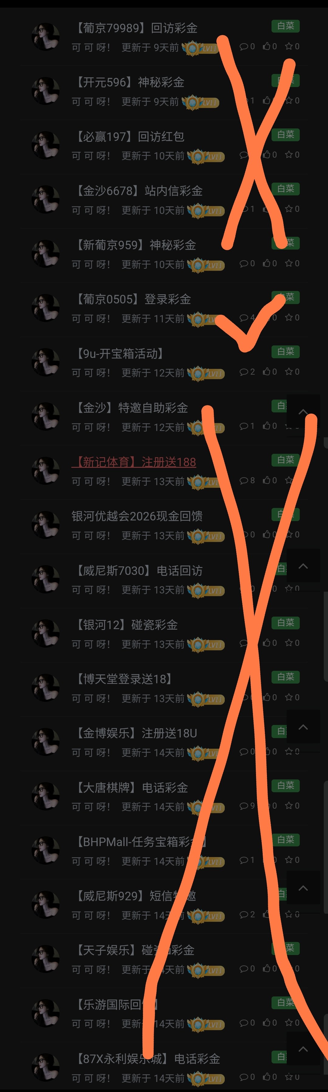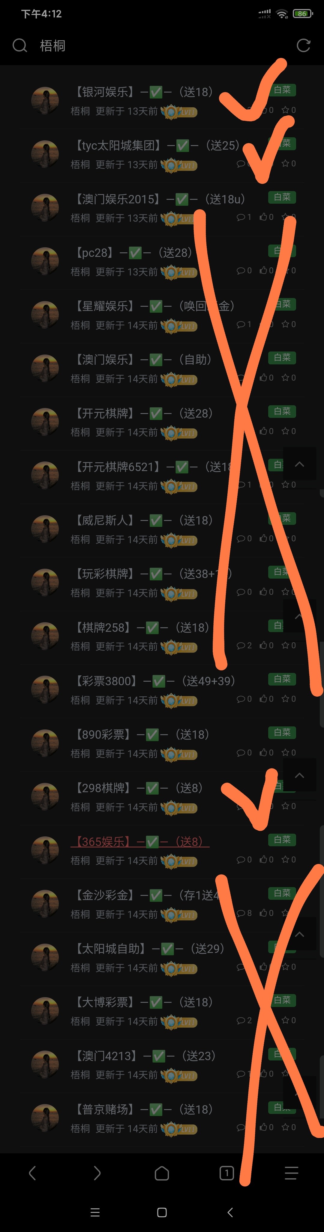 可以了,可可,你还有两个✓号,那俩杂种全是×,那俩杂种都是口水贴