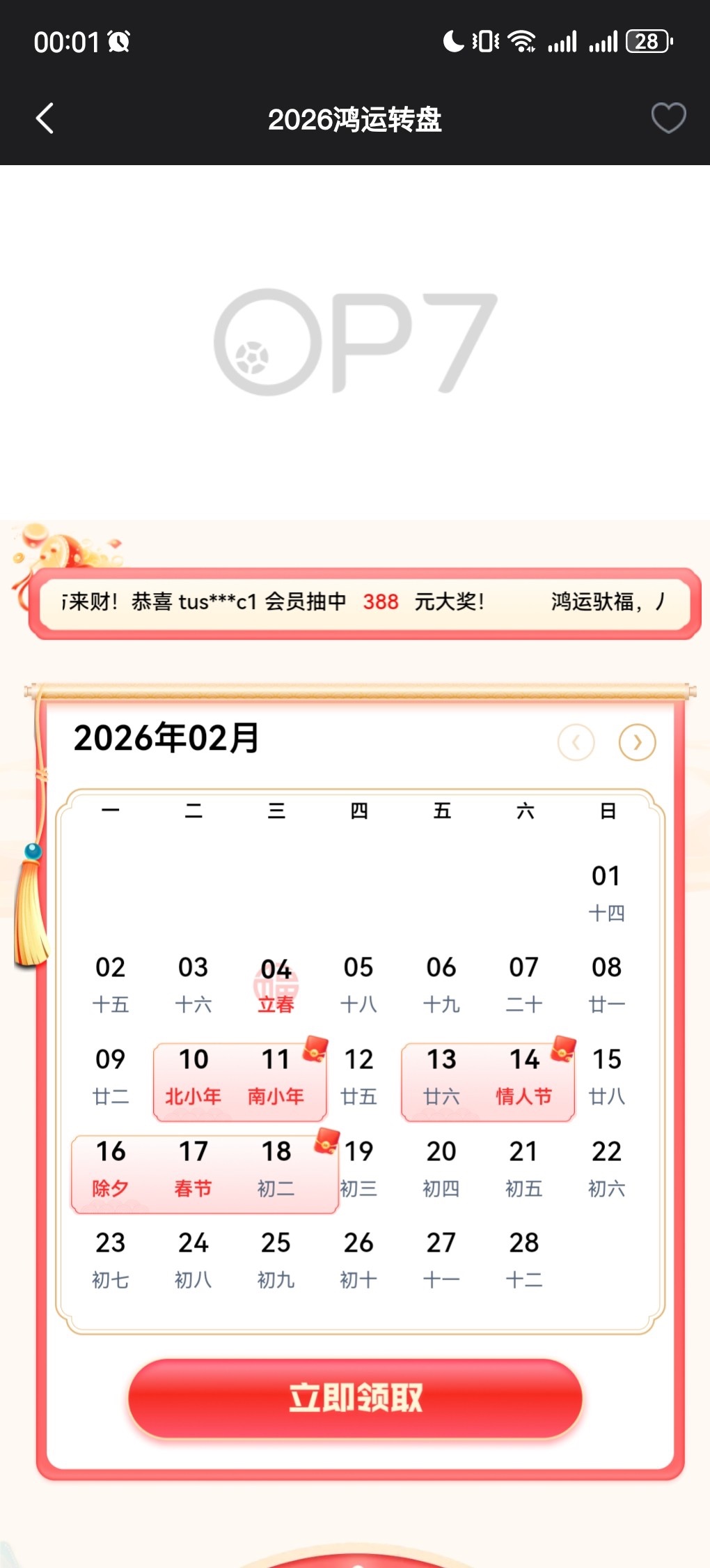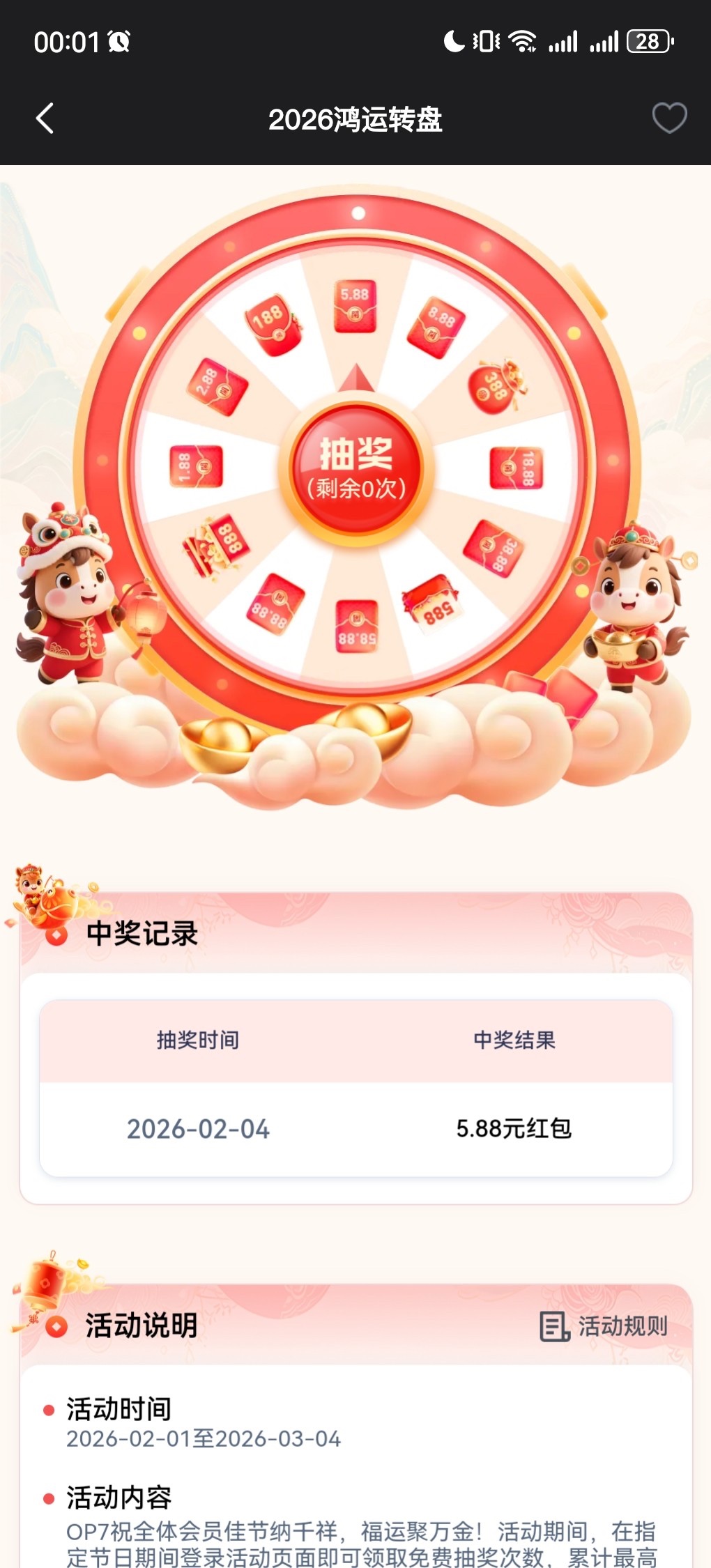 https://www.sx833.com/,op7平台(原易倍),有号的去领,活动期间可以领取五次,最高抽到888,我只抽到5.88。在优惠特殊里2026鸿运转盘