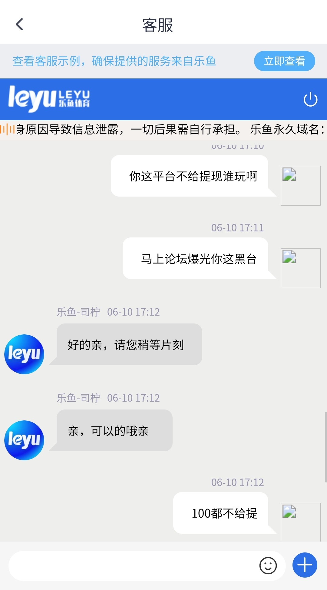 乐鱼特邀送58打到200不给出要充值然后我说论坛曝光他就给我出了100这笔黑台
