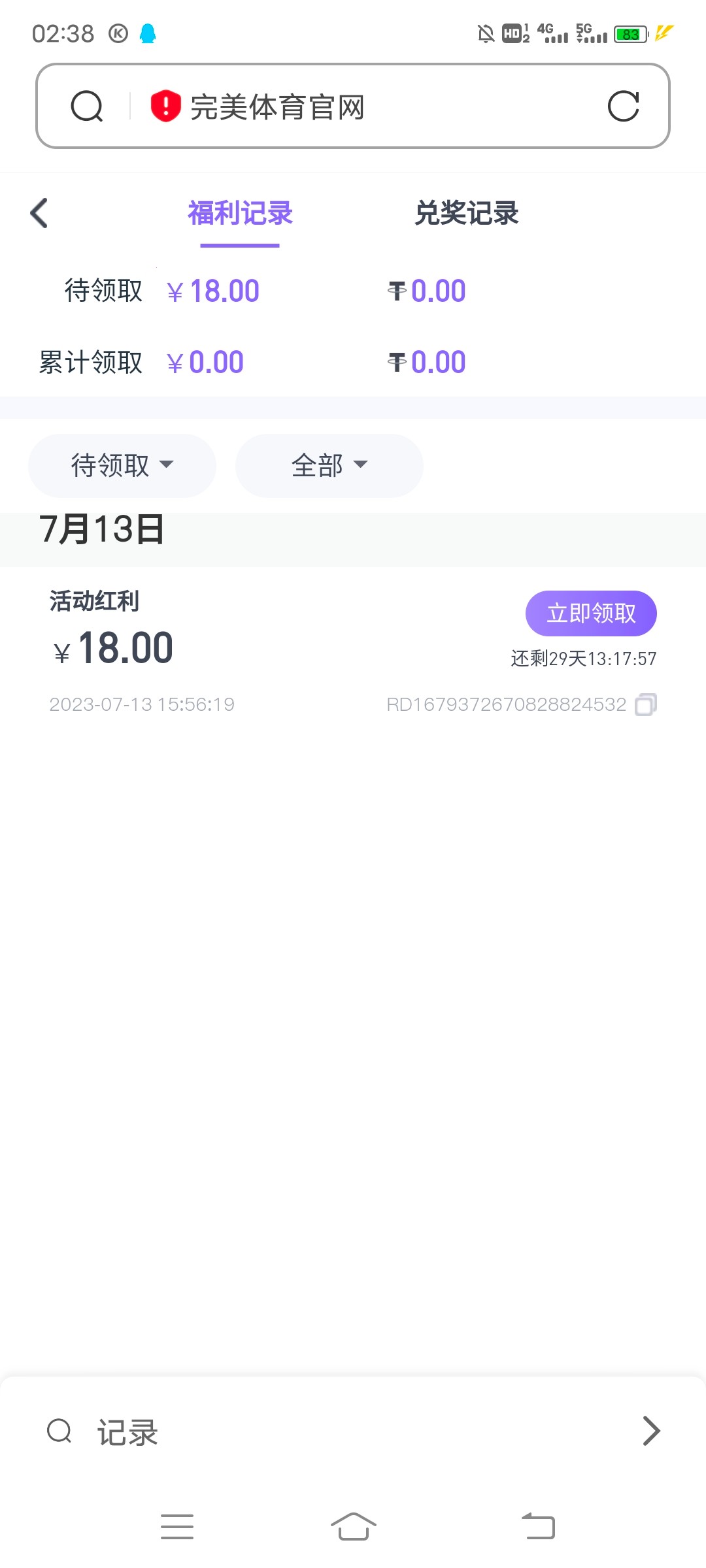 新:完美体育之前领过18的,在优惠里面在领18