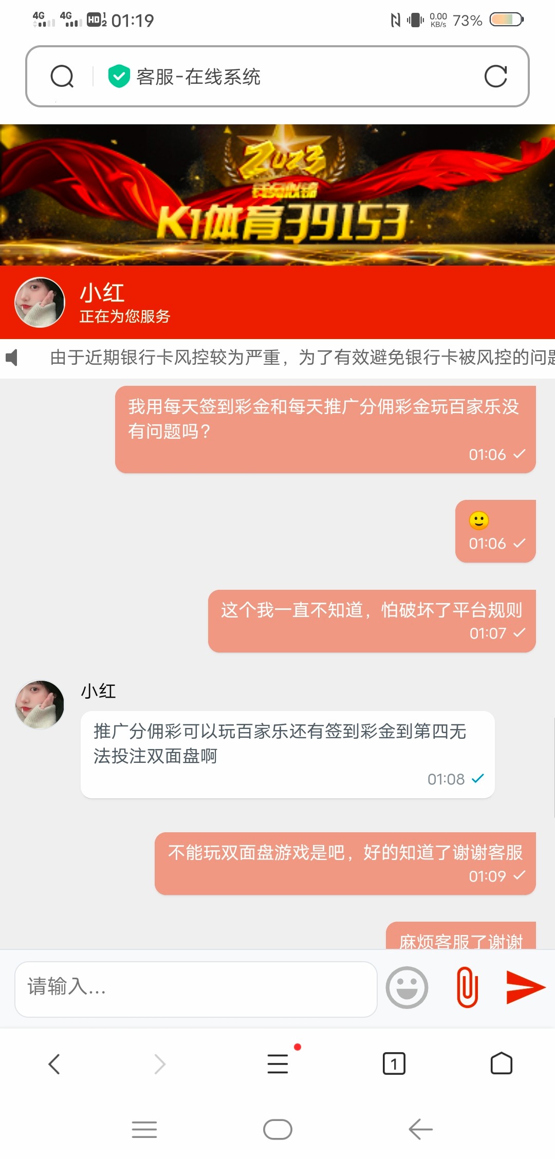 只不过我之前玩百家乐了,这个客服说不清楚,到时候异常投注就寄寄了